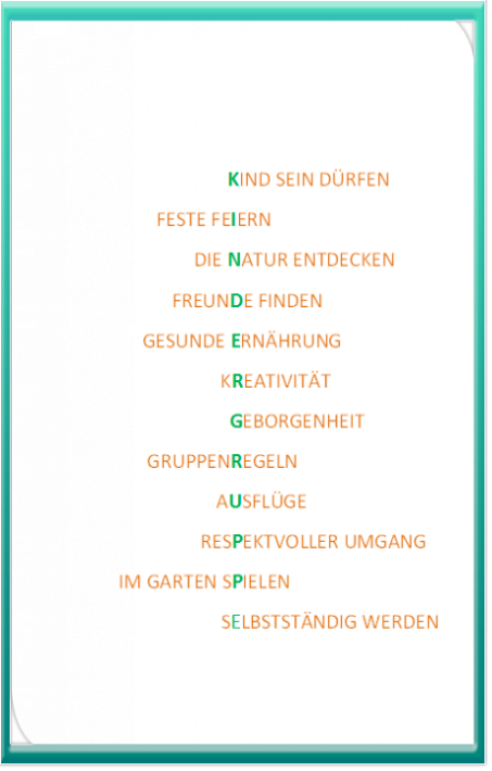 Die herausragenden Merkmale einer Kindergruppe sind der gelebte gleichberechtigte Umgang zwischen Kindern und Erwachsenen, die Kindheit als eigenständige Lebensphase anerkennt, sowie die Mitbestimmung und Mitarbeit der Eltern, die ihnen eine intensive Begleitung ihrer Kinder ermöglicht.